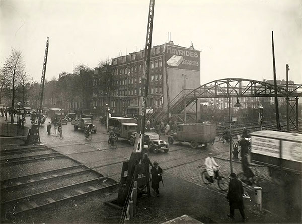 Woensdag 4 november 1925 wordt het besluit goedgekeurd de spoorwegovergang Linnaeusstraat te verbreden. De bovenste foto is uit 1900, de middelste uit 1920 en de onderste uit 1930.