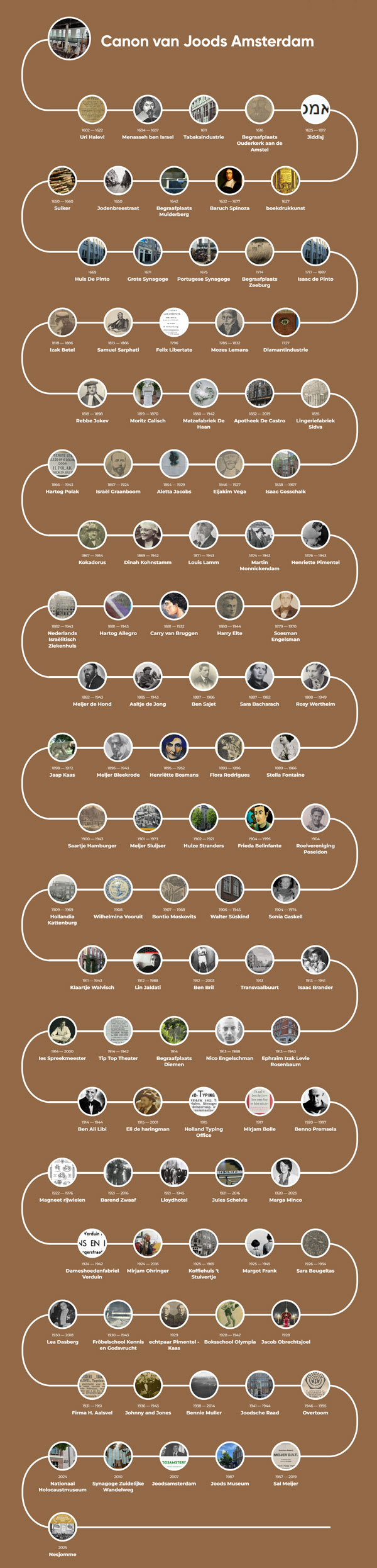 De veerkracht en het thuisgevoel van de Joodse Amsterdammer zorgde voor een ongekende bijdrage aan de ontwikkeling van de stad. Om dat een plek te geven is er uit de honderden verhalen van deze website een selectie gemaakt die de Canon van Joods Amsterdam vormen. 425 jaar Mokum verdient een prominente plek in het verhaal van 750 jaar Amsterdam. Joods Amsterdam is geen voetnoot maar een hoofdstuk in de geschiedenis van deze stad.