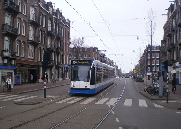 Deze avondfoto maakte Stef van de Planciusstraat, staande op de Zoutkeetsgracht. Rechts is markant de GLO-school het Smalle Pad in beeld. Meer moeite hadden deelnemers met de vraag naar de tramlijn die over de rails op de foto rijdt. Dat was ook niet fair als de tramlijnen in Amsterdam elke 14 dagen wijzigen. Dat hier een mensenleeftijdlang (sinds 1951) lijn 3 reed, was velen bekend, maar door de vernieuwing van brug de Bullebak (sinds 2020) werd het eindpunt van lijn 3 verlegd naar de Van Hallstraat waar ooit de 10 en later de 5 stonden. Lijn 3 is in 2024 ingekort tot het Frederik Hendrikplantsoen waar nog steeds het eindpunt is. Tot de nieuwe dienstregeling in 2026 ingaat, dan wordt lijn 3 helemaal opgeheven. Het traject vanaf de Zoutkeetsgracht wordt sinds 8 oktober 2025 pas weer bediend, maar nu door lijn 13 met eindpunt Geuzenveld.