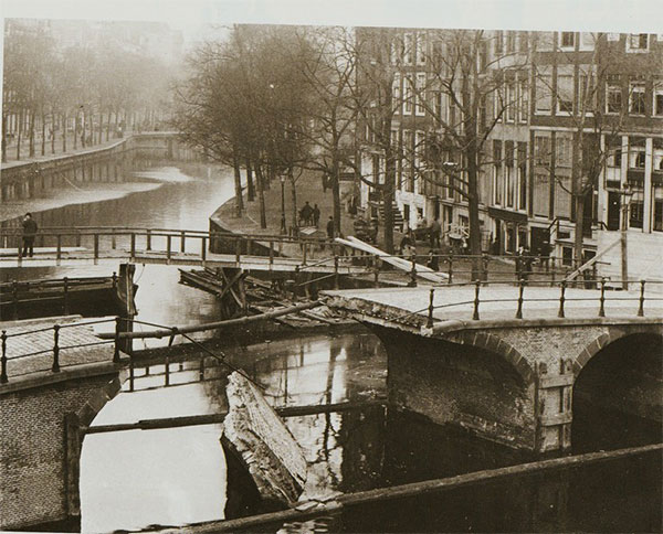 en keek dit keer naar de voormalige Quellijnbrug (#46) in de Leidsegracht. Dat is de beruchte brug die in 1894 opeens instortte. Jacob Olie maakte daar de onderste foto van. Dat was wel vanaf de tegenoverliggende hoek.