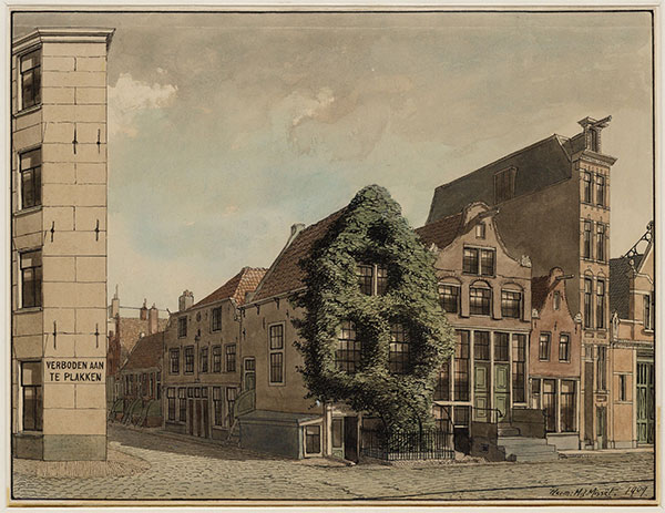"Een huis van de grootmeester zelf en nu eigendom van de vereniging met zijn naam. In basis is dit een 16e-eeuws huis in hout skeletbouw maar in 1615 kreeg het een nieuwe voorgevel in Hollandse Renaissance-stijl. De gevel is in baksteen maar rijk versierd met natuurstenen elementen. Het pand loopt door tot de volgende gracht.