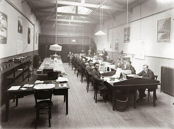 Op 1 oktober 1930 deed men een verkeerstelling in het centrum. Dit was mogelijk de eerste keer; althans het is de eerste keer dat het de kranten haalde. Het tellen was nog mensenwerk. Twee jonge mensen turven hier alle verkeersdeelnemers, van voetgangers tot handkarren. Tegenwoordig gaat het tellen zonder mens: sensoren en camera’s doen het werk en de gegevens gaan direct de computer in. De foto is wat wazig, maar bevat allerlei aanknopingspunten, zoals een tram, een flauwe bocht en een brug. Een makkie ...