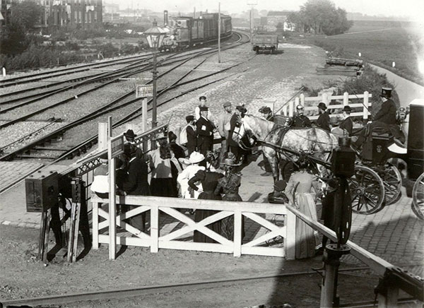Woensdag 4 november 1925 wordt het besluit goedgekeurd de spoorwegovergang Linnaeusstraat te verbreden. De bovenste foto is uit 1900, de middelste uit 1920 en de onderste uit 1930.