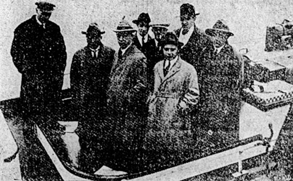 Op zaterdag 7 november zet sleepboot Hector de geredde drenkelingen van de SS IJsselstroom op de Oostelijke Handelskade aan land. De IJsselstroom was 's nachts voor de kust van West-Afrika op een rots onder water gelopen, menende dat het 3 km uit de kust voer. Het maakte zo snel water dat een noodroep verzonden werd, waarop de bemanning en 4 passagiers door een Belgisch schip aan boord genomen werden. Die zette ze aan land en vandaar ging het met een schip van de eigen maatschappij - de Albireo - naar IJmuiden. Daar werden ze door de sleepboot overgenomen, inclusief wat geredde goederen. Op de bovenste foto klautert de bemanning via touwladders op de sleepboot, op de onderste foto worden de scheepsofficieren van de IJsselstroom apart naar Amsterdam vervoerd.