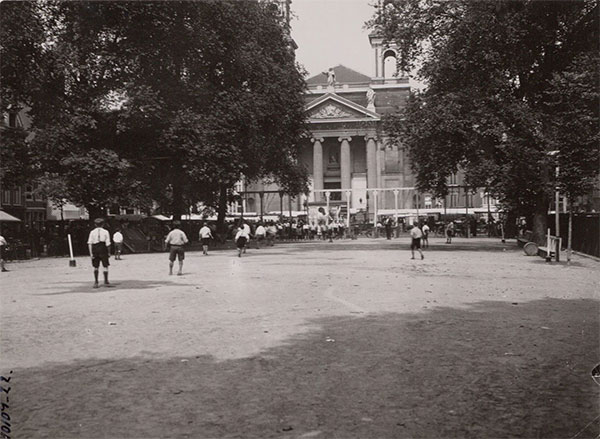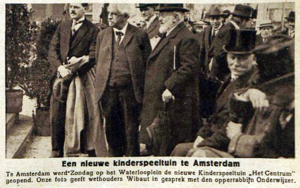 De bovenste is de foto die ons letterlijk voor ogen stond. Na het dempen van de Leprozengracht werd een deel van het tracé veranderd in speeltuin 't Centrum c.q. speelveld. De dubbele toren is dan die van de Mozes en Aaronkerk. De speeltuin werd op zondag 2 september 1923 door wethouder Wibaut geopend. In WOII werd deze speeltuin bij razzia’s in de buurt gebruikt om de Joodse bewoners te verzamelen voordat ze werden weggevoerd. Na de oorlog was er niemand meer om er te spelen en is de plaats ontruimd.