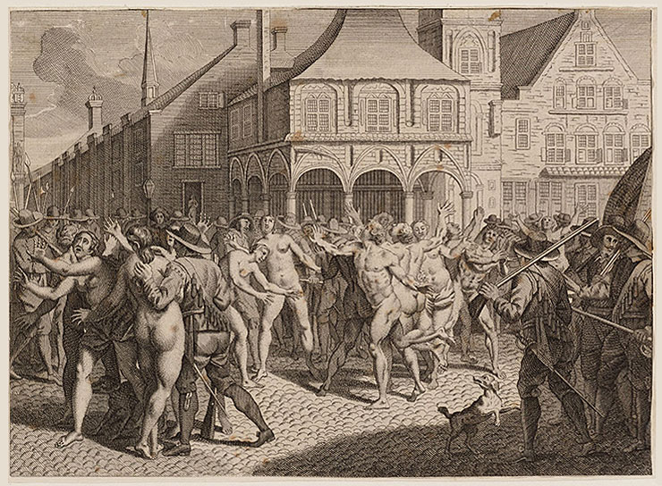de strenge ketter-voorschriften van de Brusselse regering te negeren. Tot ze op 11 februari 1535 met veel rumoer naakt door de straten liepen en op 10 mei 1535 een gewapende meute het stadhuis belaagde. Zij hadden hun hand overspeeld.
