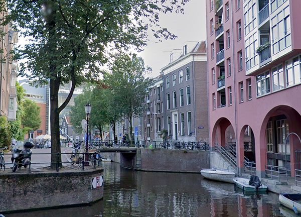 Dankzij het moderne bouwsel op de achtergrond - het voormalige hoofdkantoor van de ABN AMRO in de Vijzelstraat – wisten alle inzenders: de zonnebaadster ligt op een dak in de Kerkstraat. Het huisnummer was iets lastiger, al kwamen de meesten met het dubbelpand 312 – 314. (310 en 316 heb ik echter ook goed gerekend.) Nummer 310 is overigens een interessant gebouw: het doopsgezinde oude vrouwenhuis uit 1759. Dit pand is helaas gehalveerd, de linkerhelft is vervangen door nieuwbouw waar deze vrouw poseert. De resterende oude gevel is nog intact.