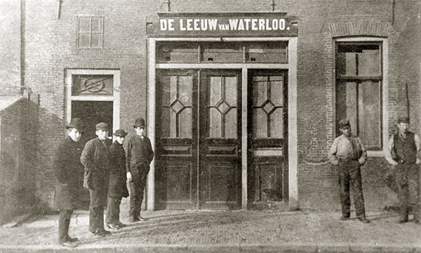 Dit pand stond tot de sanering op het Waterlooplein 62 en herbergde het café of bierhal De Leeuw van Waterloo van Paulus Penning, een der vroegste socialisten in Amsterdam en vriend van Domela Nieuwenhuis. Hier vergaderde de Sociaal-Democratische Vereeniging en dat leidde regelmatig tot belegeringen door anti-socialisten wat toen inhield: Oranjeklanten, confessionelen en overheidsdienaren, zeg politie.